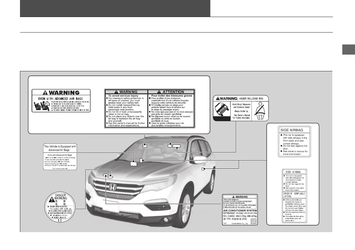Honda Pilot 2016 - Label Locations; Safety Labels
