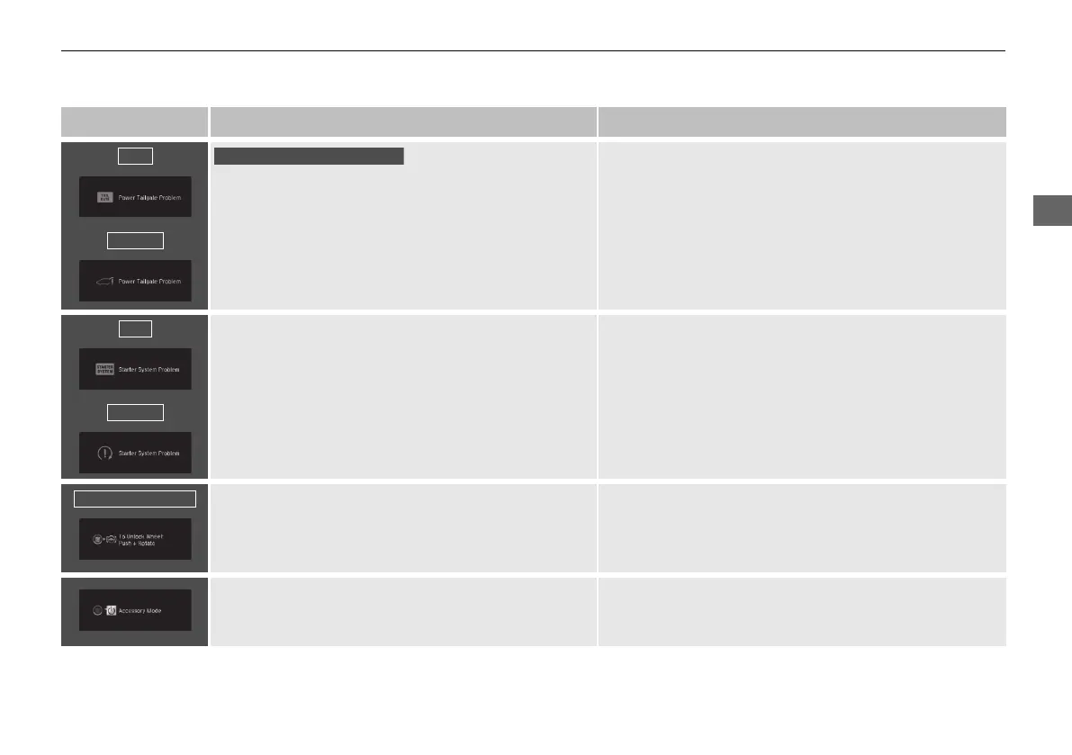 • Appears when the starter system has a problem. • As a temporary measure, press and hold the ENGINE