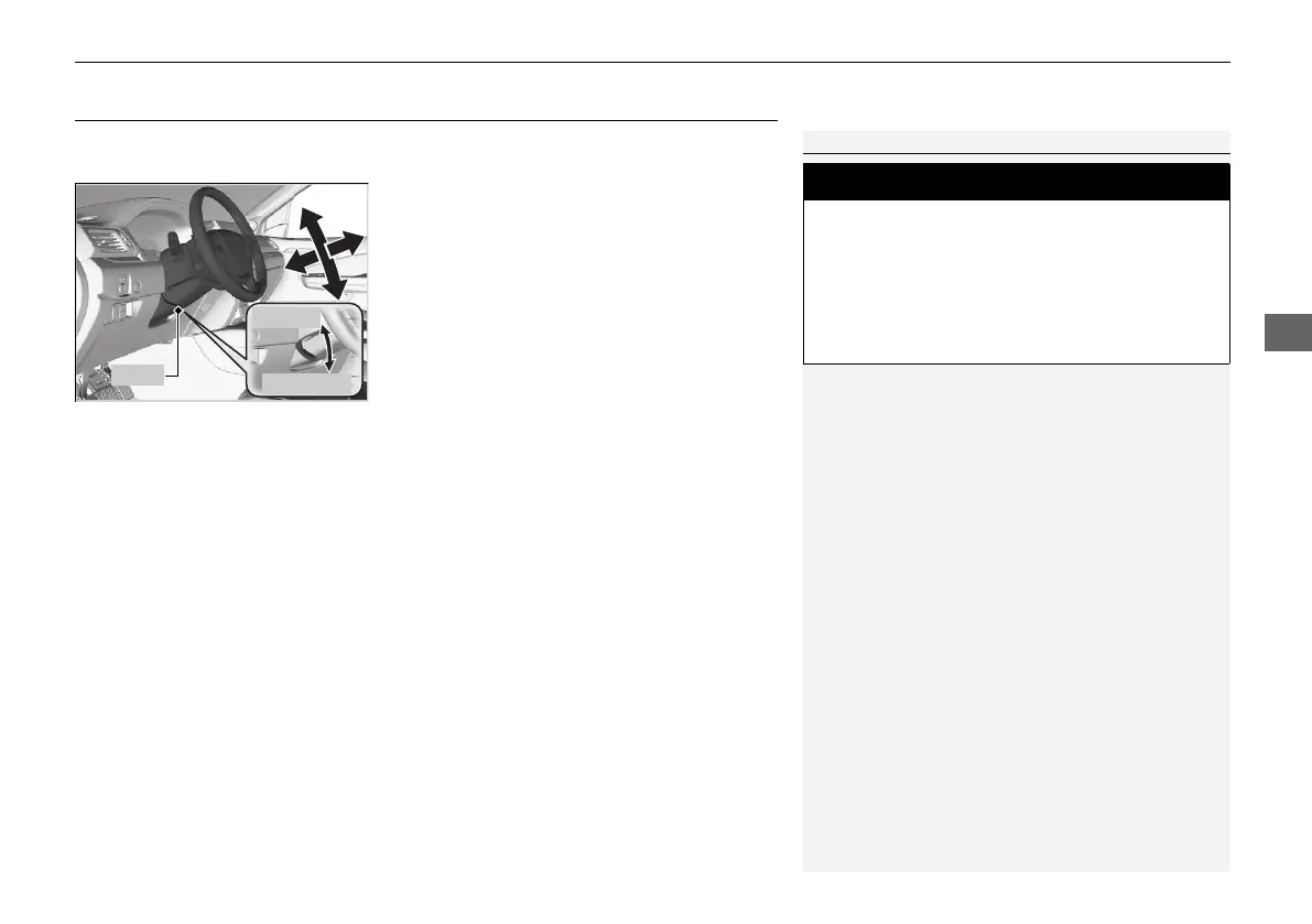 u The steering wheel adjustment lever is
