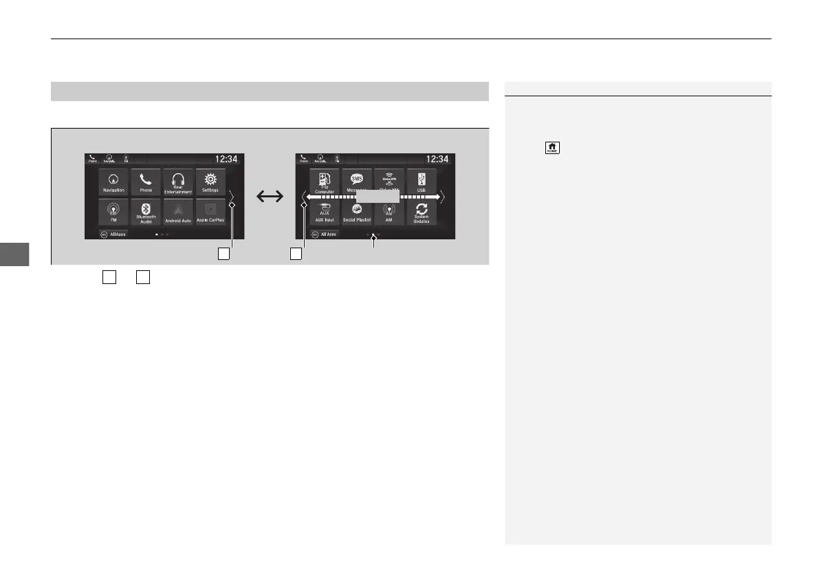Selecting or , or swiping the screen left or right changes to the next screen.