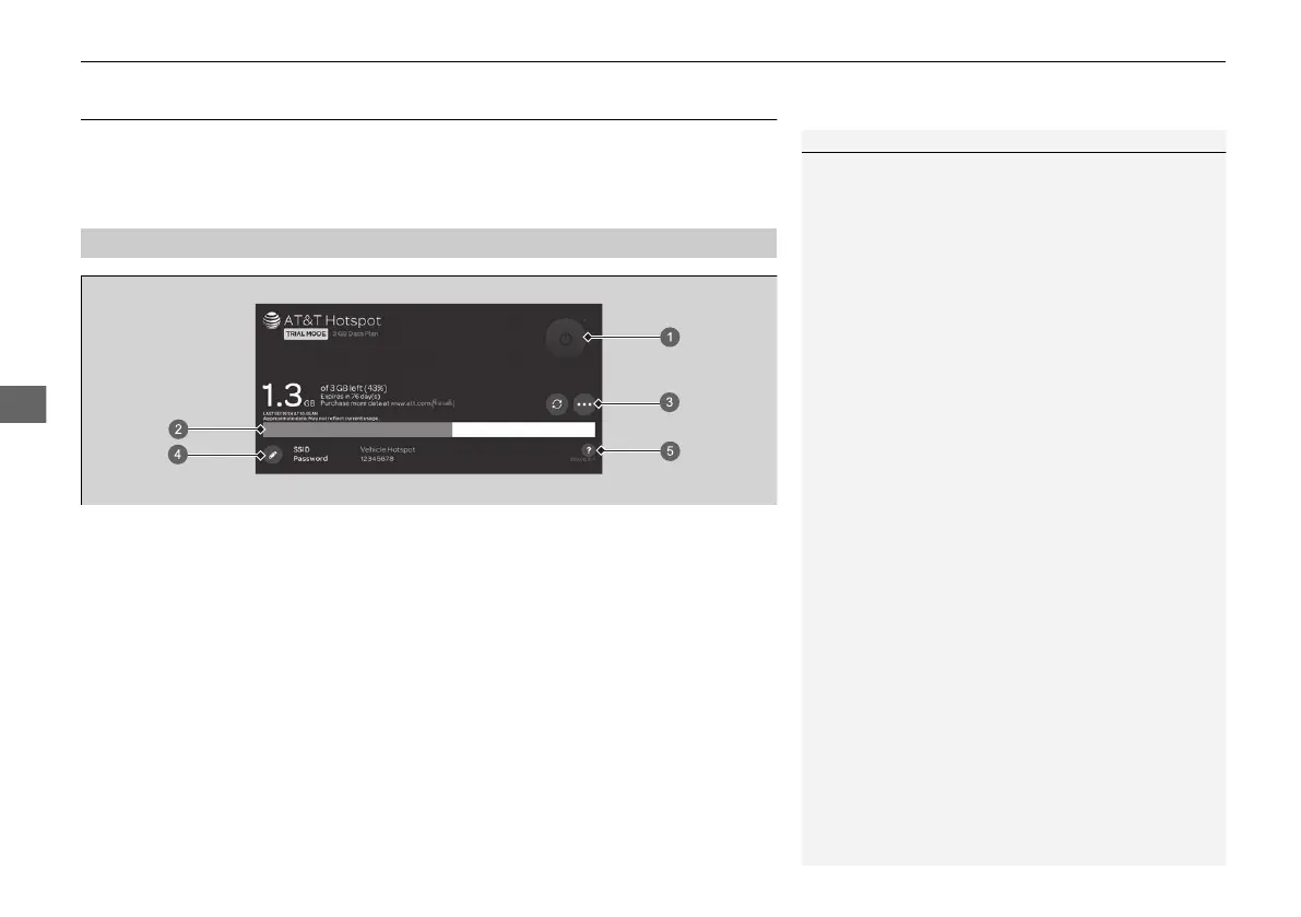 Shows the current username and password for vehicle Hotspot. Hotspot settings