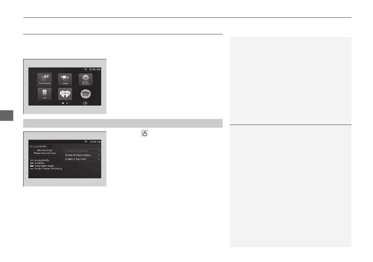 The Blu-ray/DVD Rear Entertainment System (RES) supports an accessibility function