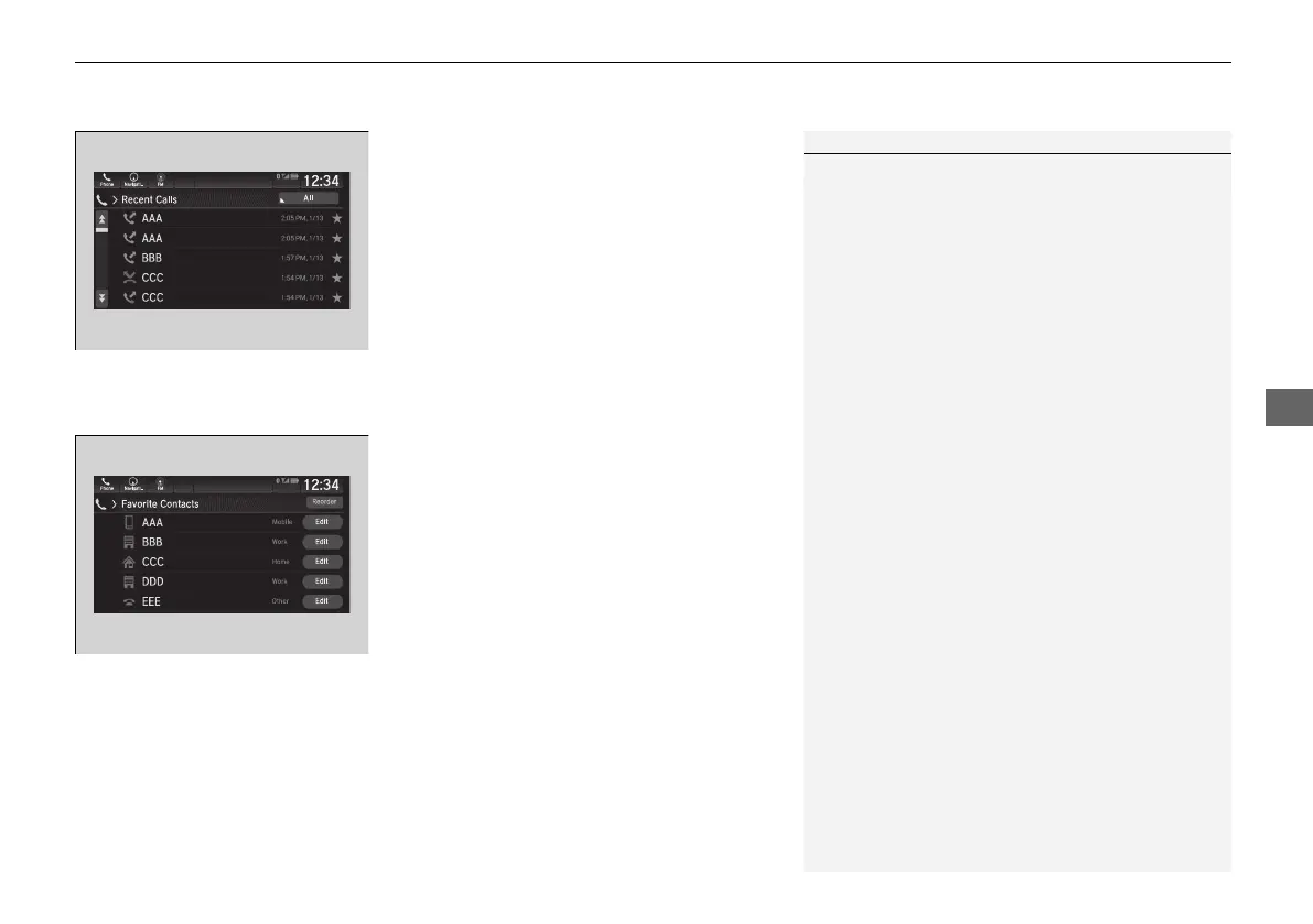 uuBluetooth® HandsFreeLink®uHFL Menus