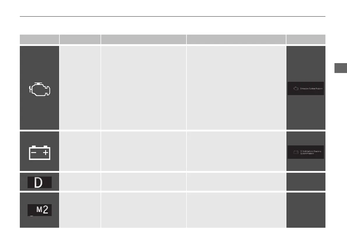 • Comes on while driving - Turn off the