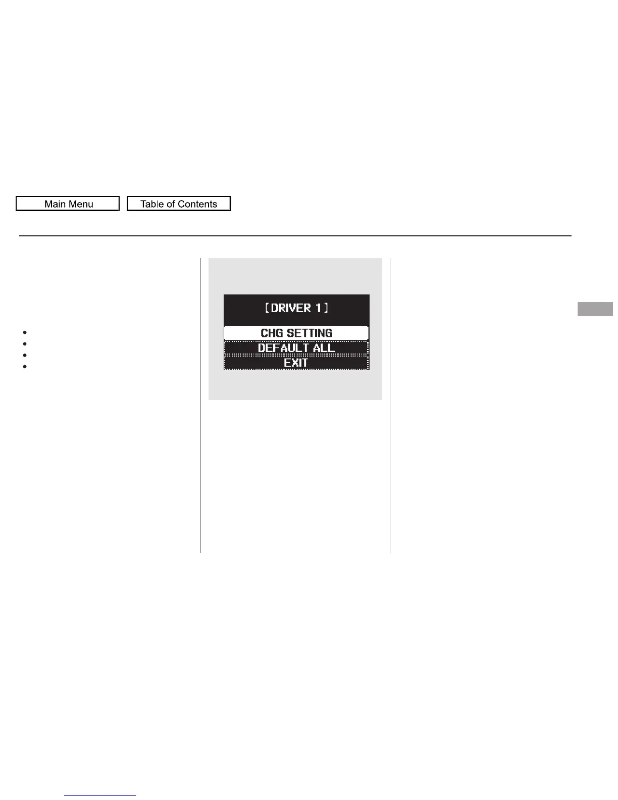 vehicle control settings, press the