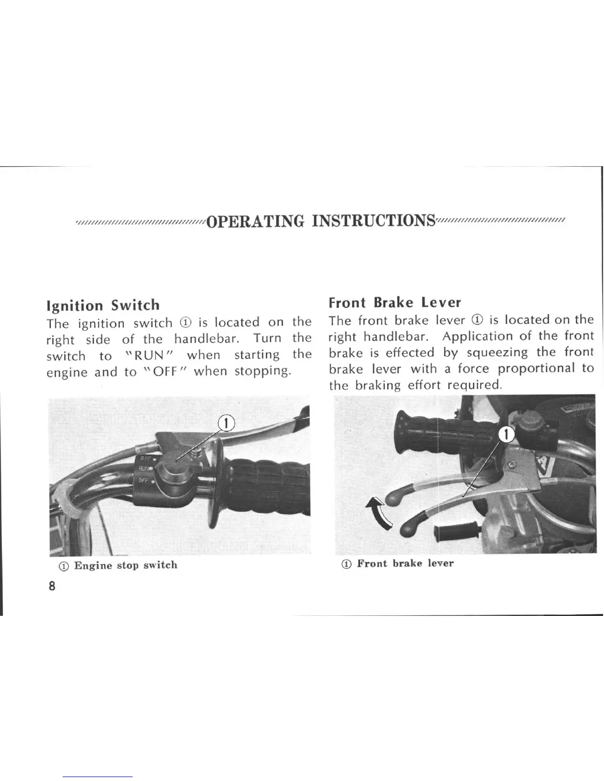Honda QA50 - Operating Instructions; Ignition Switch; Front Brake Lever