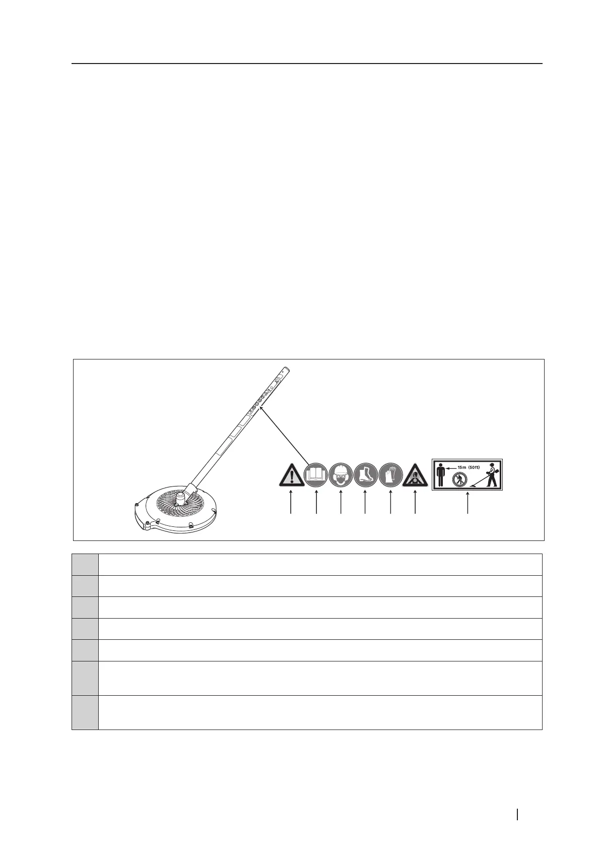 7 Keep persons and animals out of the area within a radius of 15 meters from the blower during