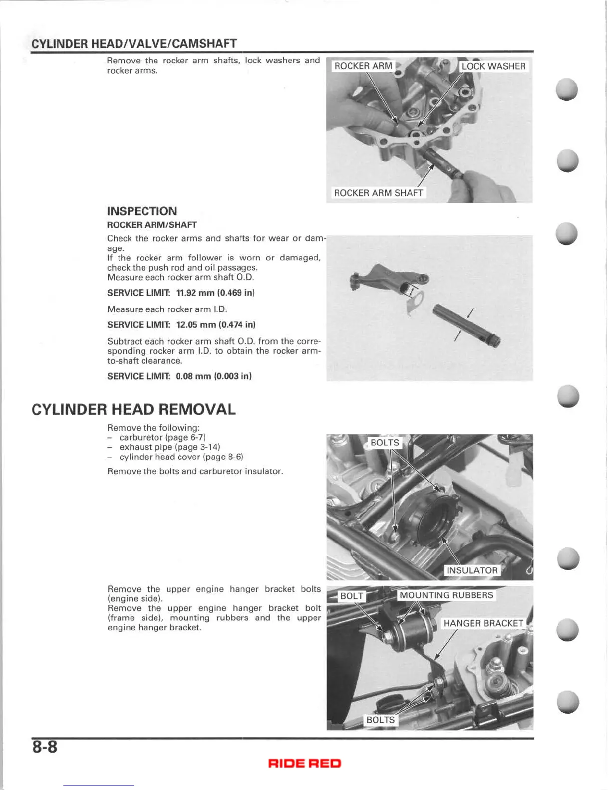 Honda TRX400FA - Cylinder Head Removal; Rocker Arm;Shaft Inspection