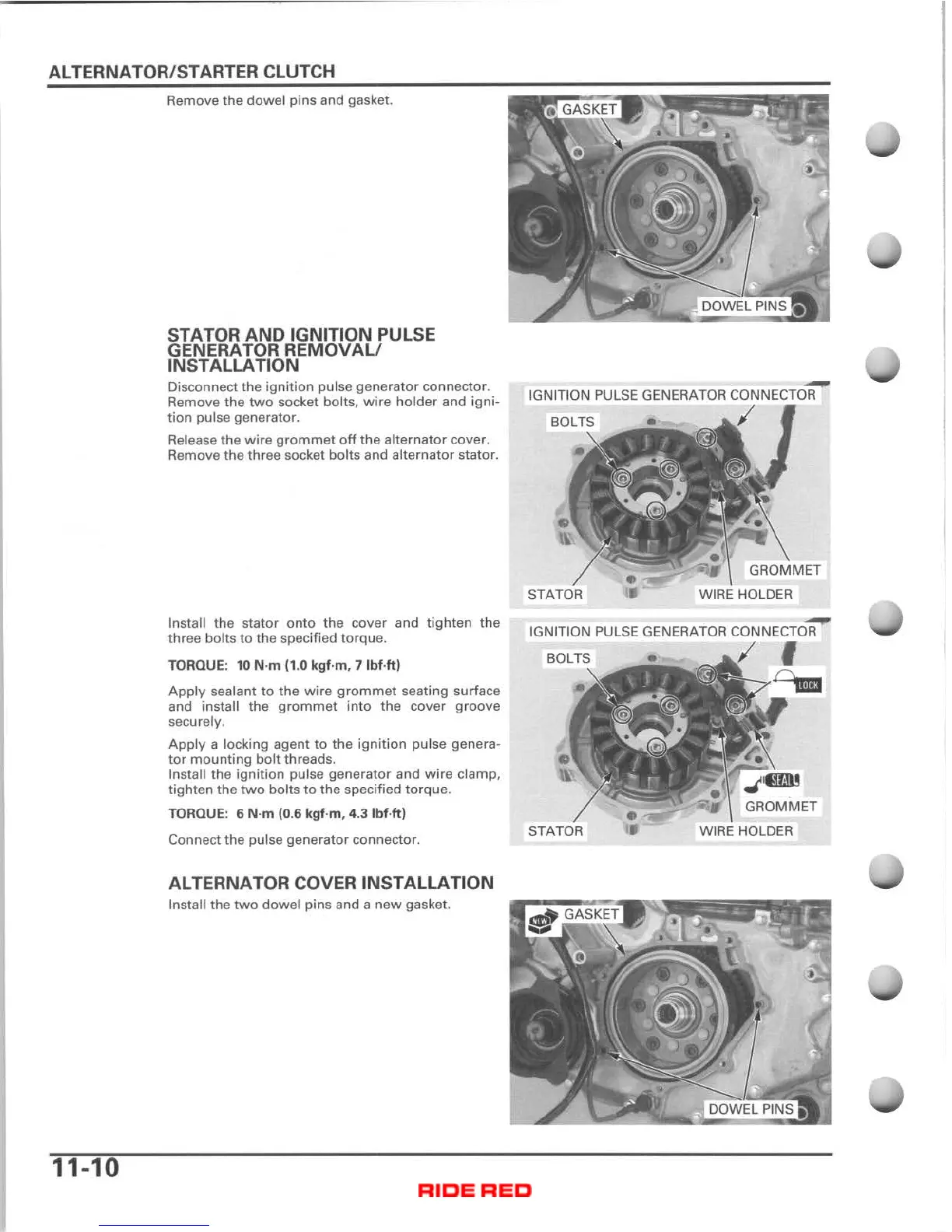 Honda TRX400FA - Alternator Cover Installation; Stator and Ignition Pulse Generator Removal;Installation