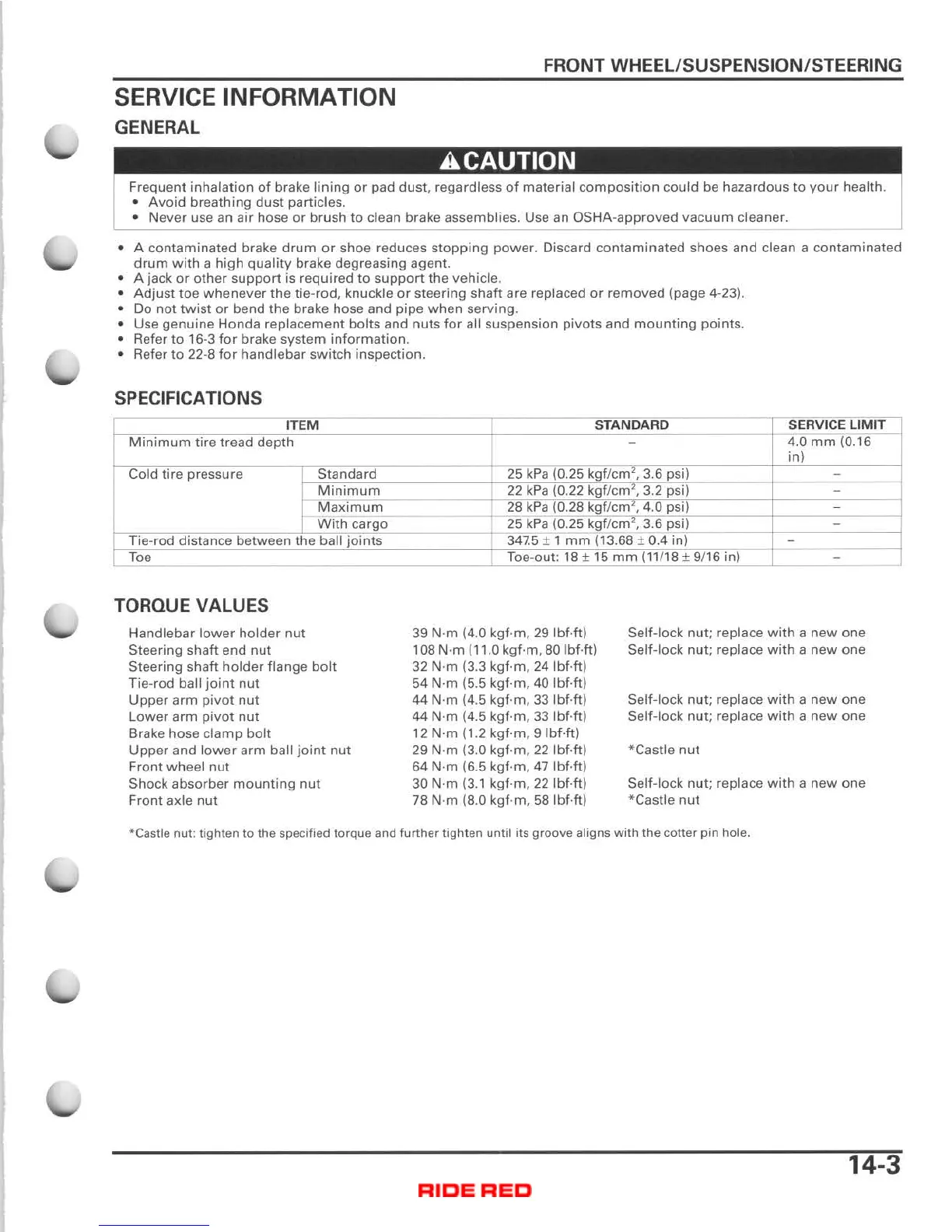 Honda TRX400FA - Front Wheel;Suspension;Steering Service Information