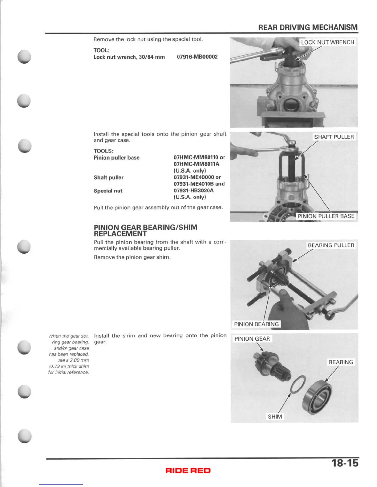 Honda TRX400FA - Pinion Gear Bearing;Shim Replacement