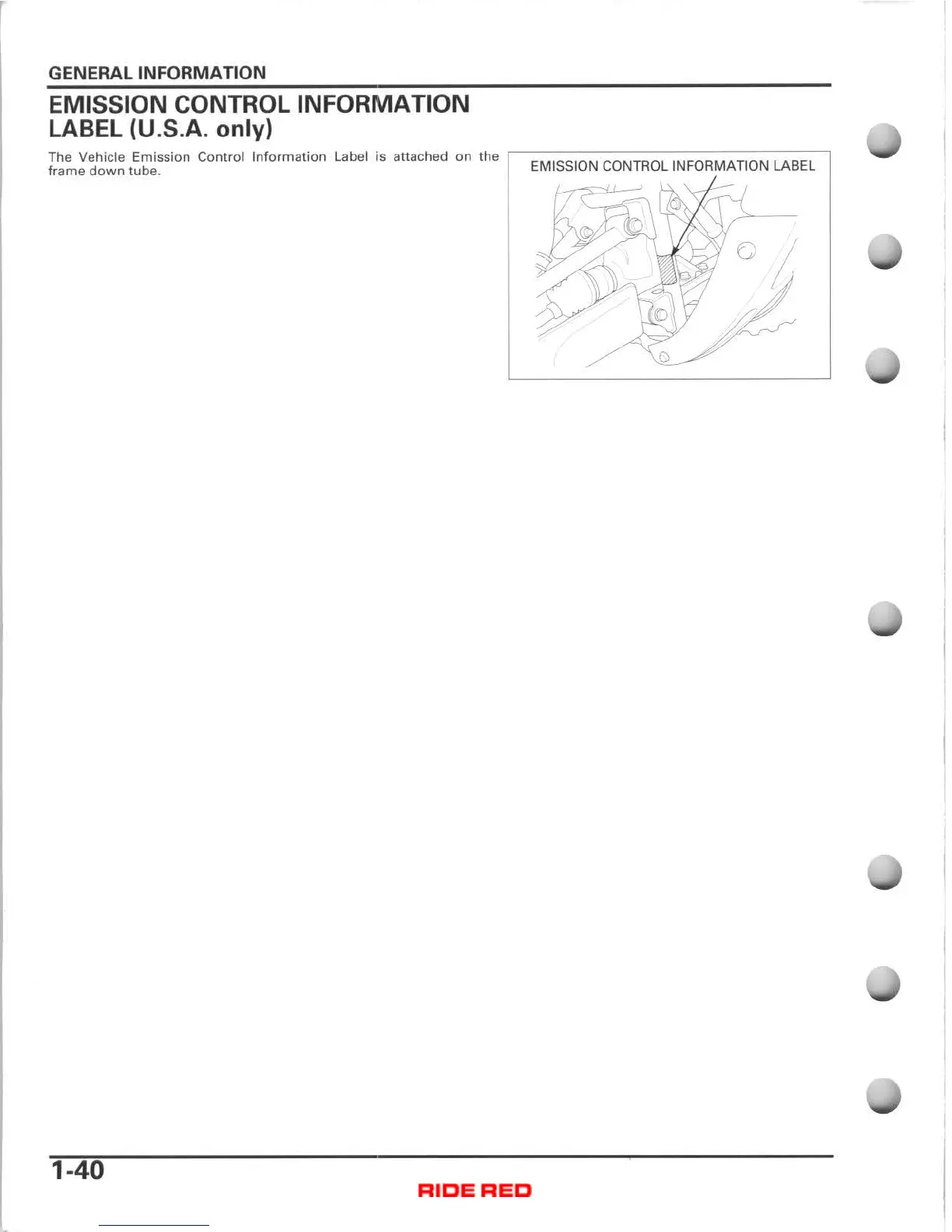Honda TRX400FA - Emission Control Information Label (U.S.A. Only)