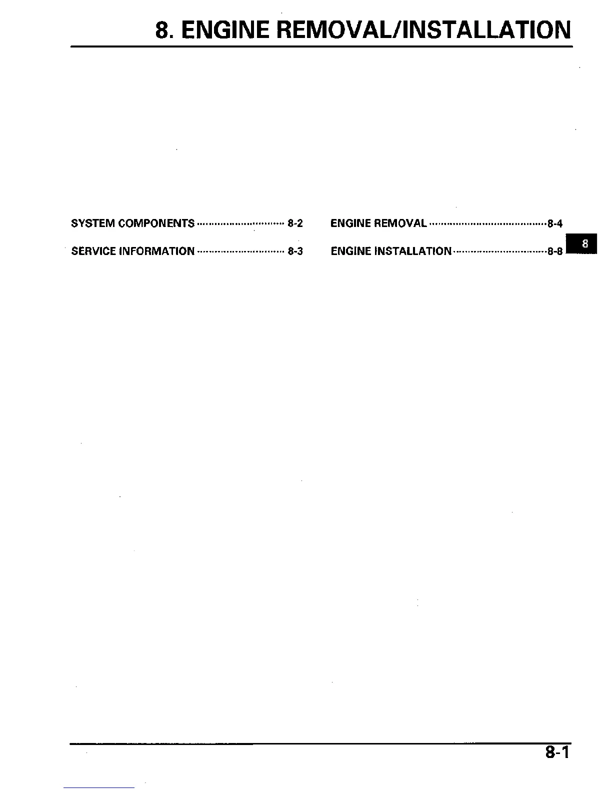 SYSTEM COMPONENTS 8-2 ENGINE REMOVAL 8-4