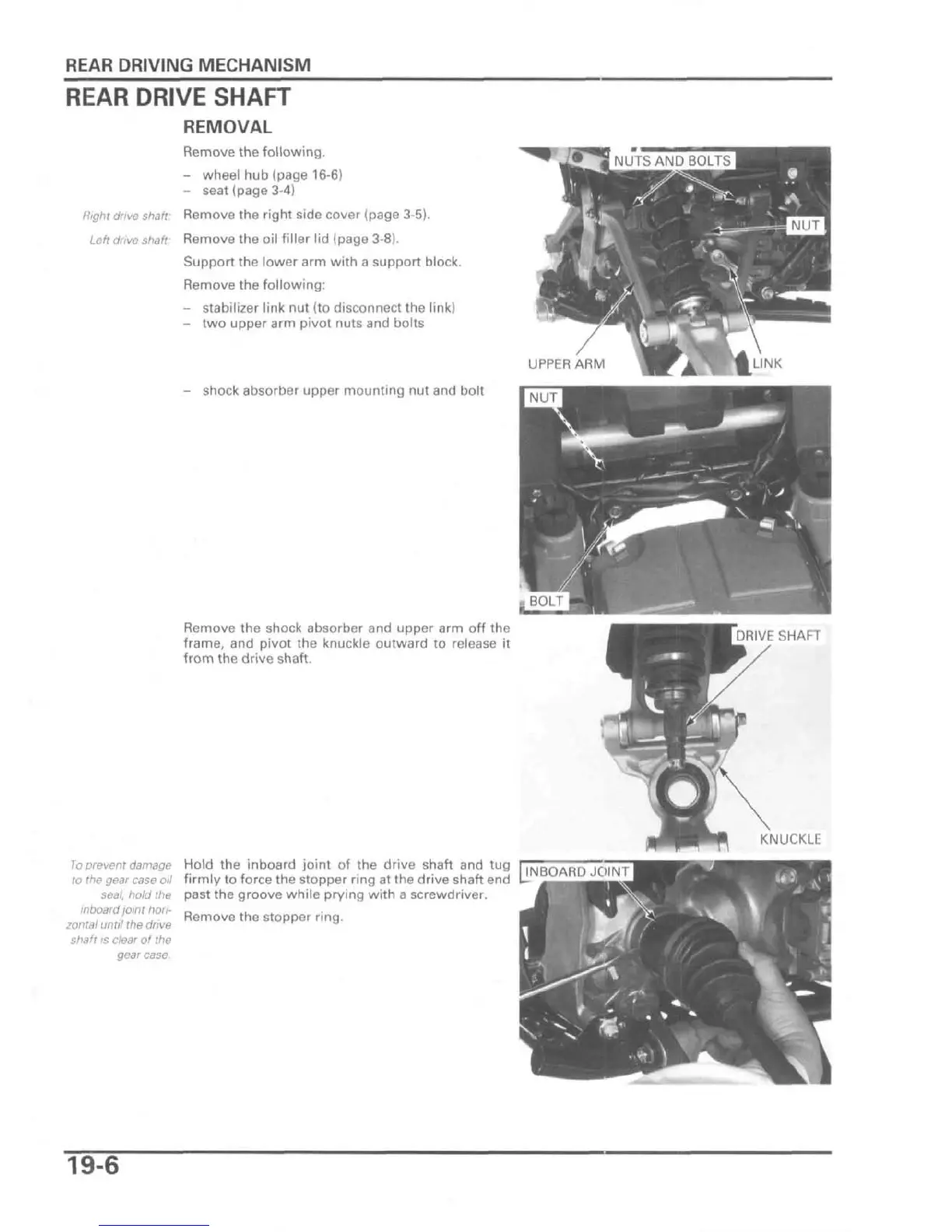 oil firmly to force the stopper ring at the drive shaft end U