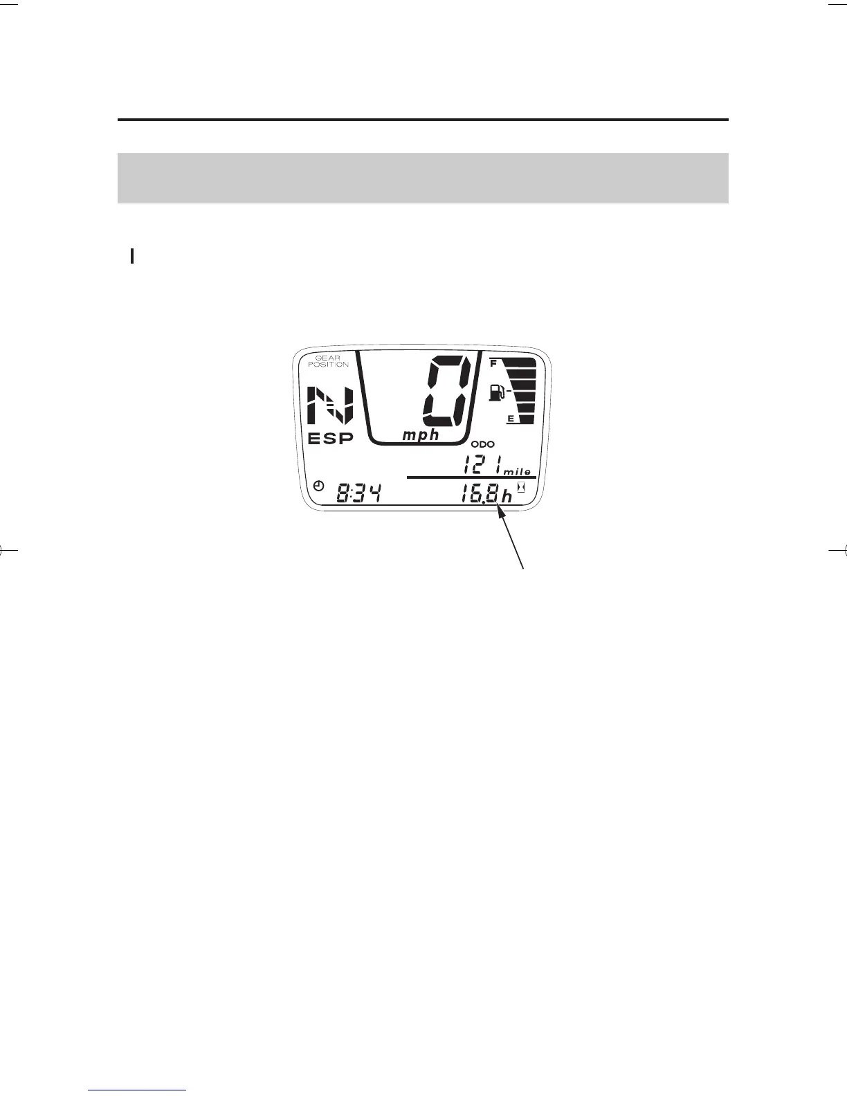 The hourmeter ( ) shows accumulated hours while the ignition is ON