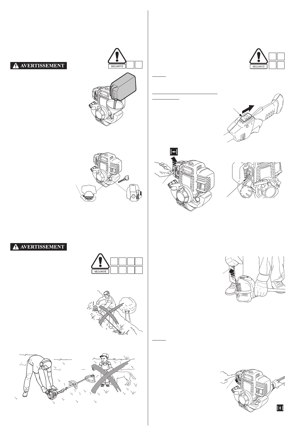 • Ne pas laisser la poignée du lanceur revenir brutalement contre le
