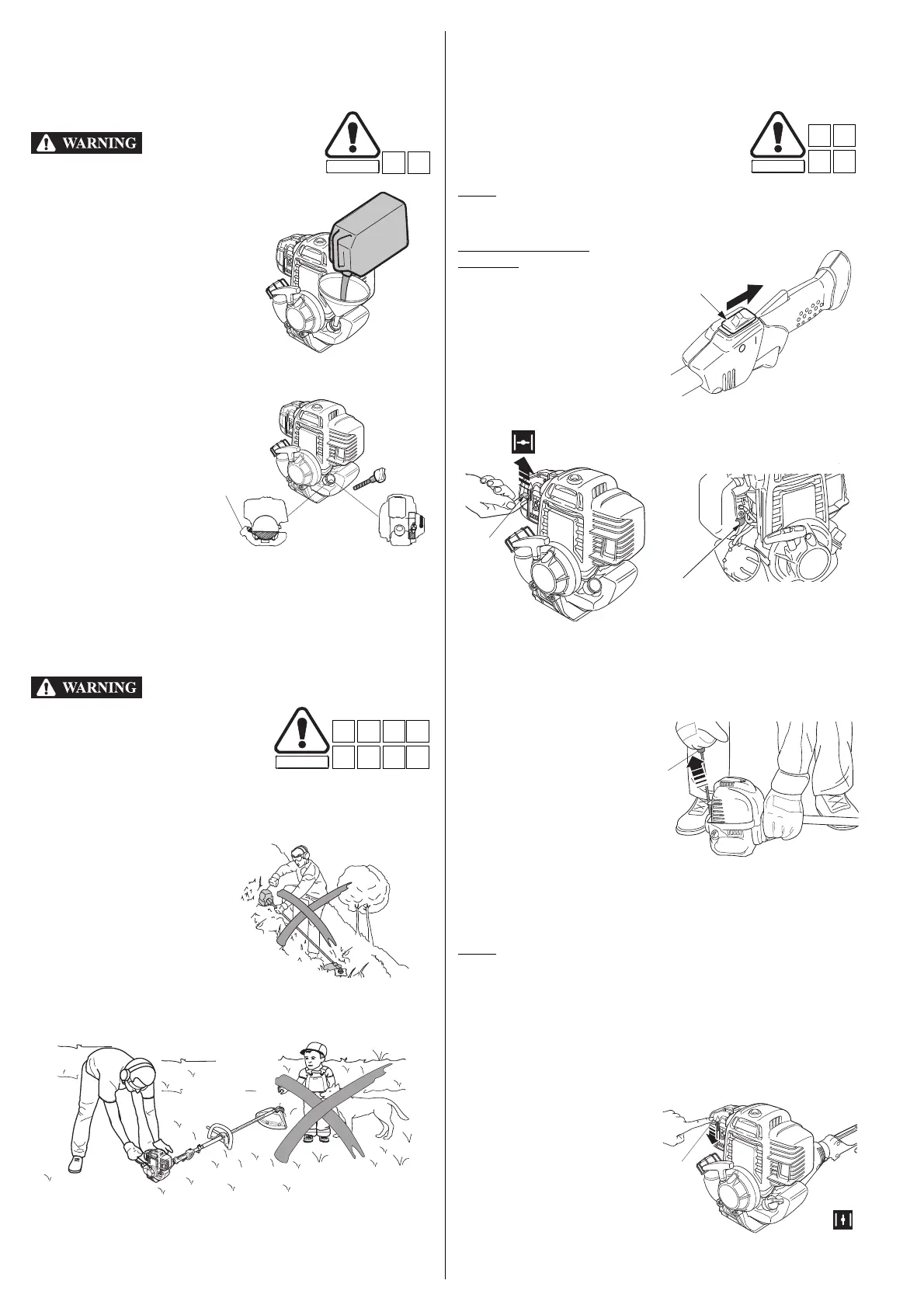 • Do not release the recoil starter suddenly so that it strikes the engine.
