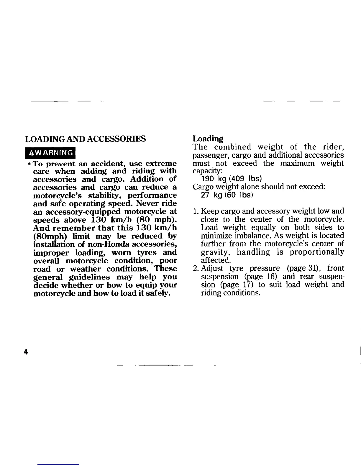 Honda VFR750F - Loading and Accessories