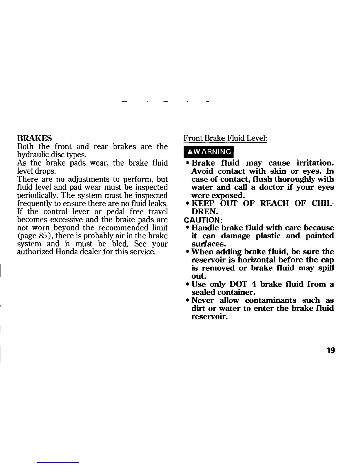 Honda VFR750F - Brakes; Front Brake Fluid Level