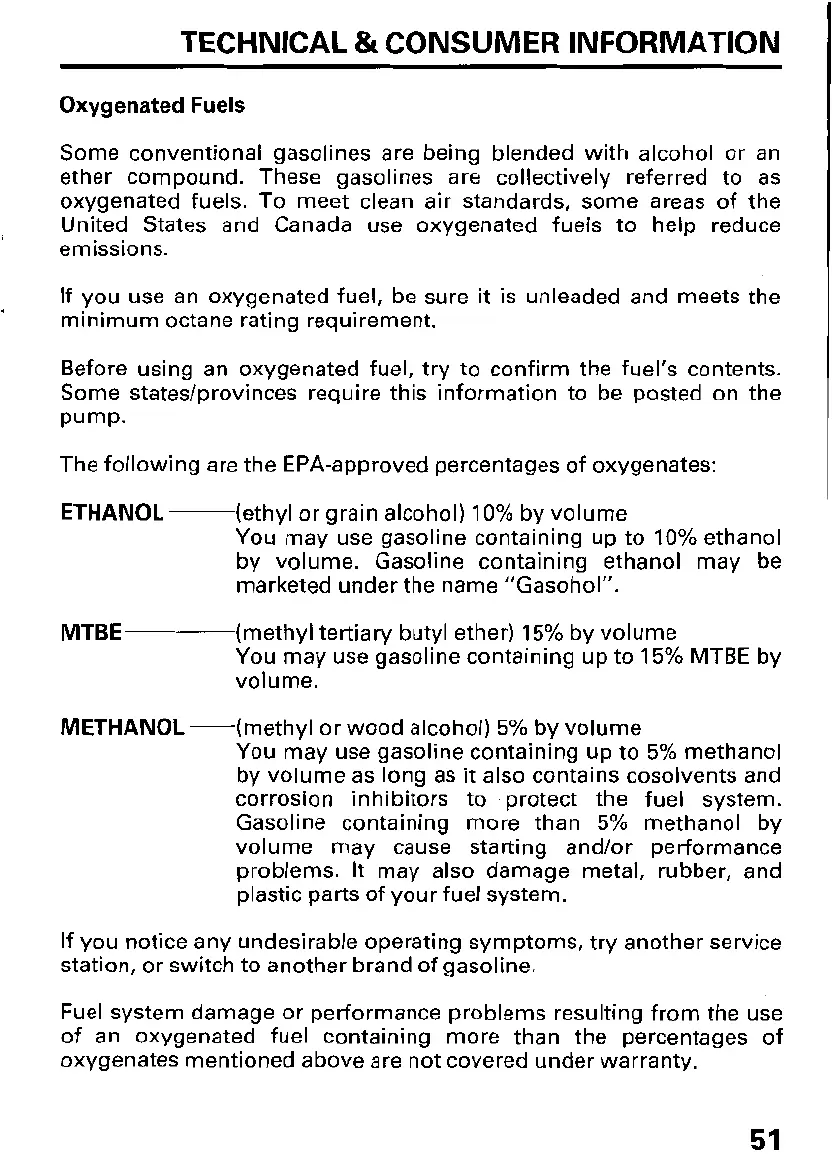 oxygenates mentioned above are not covered under warranty.