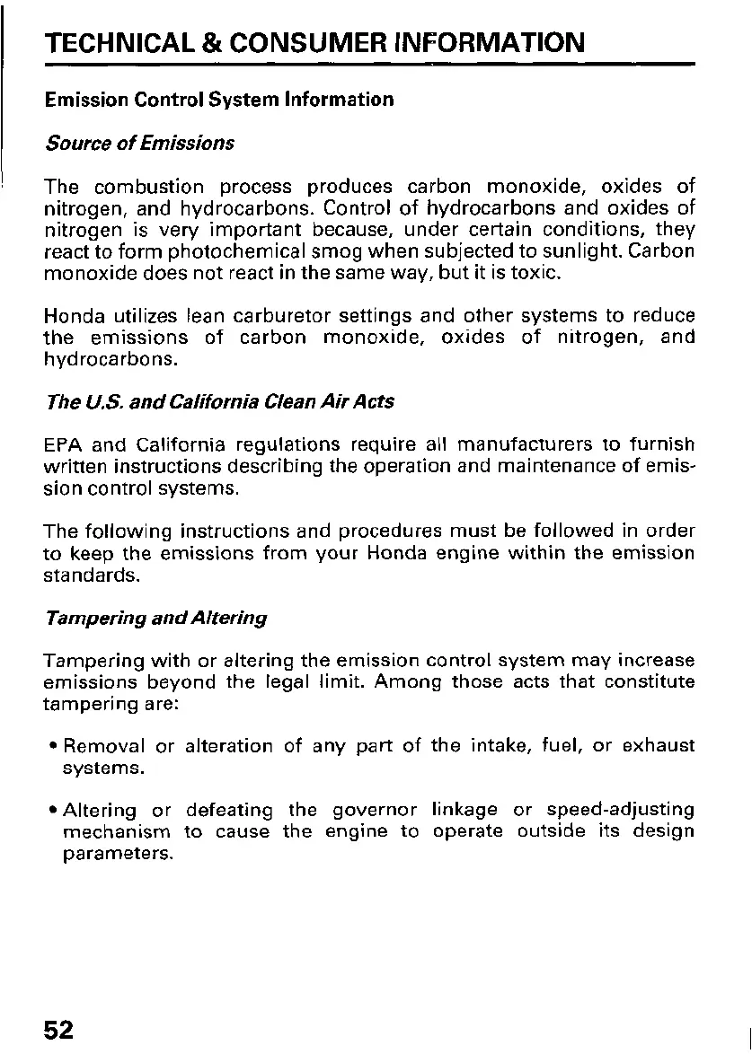 Removal or alteration of any part of the intake, fuel, or exhaust