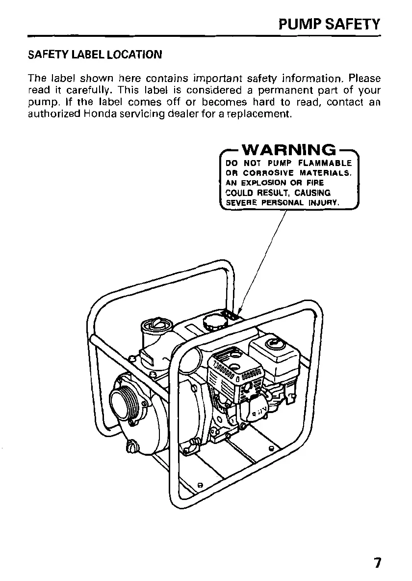 Honda WP20X, WP30X - Pump Safety; Safety Label Locations