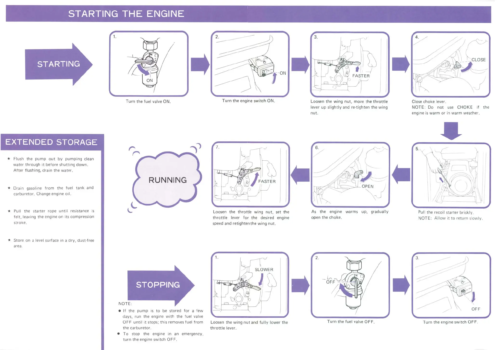 Honda WT20 - Starting the Engine; Engine Starting Procedure; Extended Storage; Storage Preparation