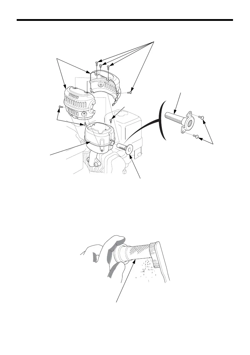4. Install the spark arrester, muffler protector, and muffler in the reverse order of