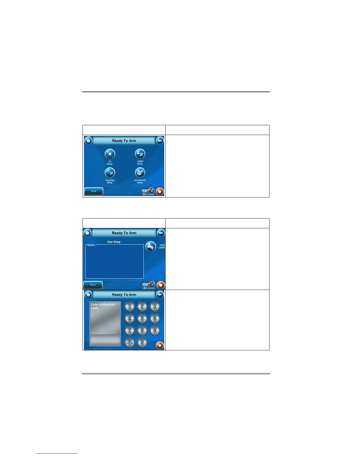 1. From the "Home" screen, press the Setup button. The "Setup" screen is