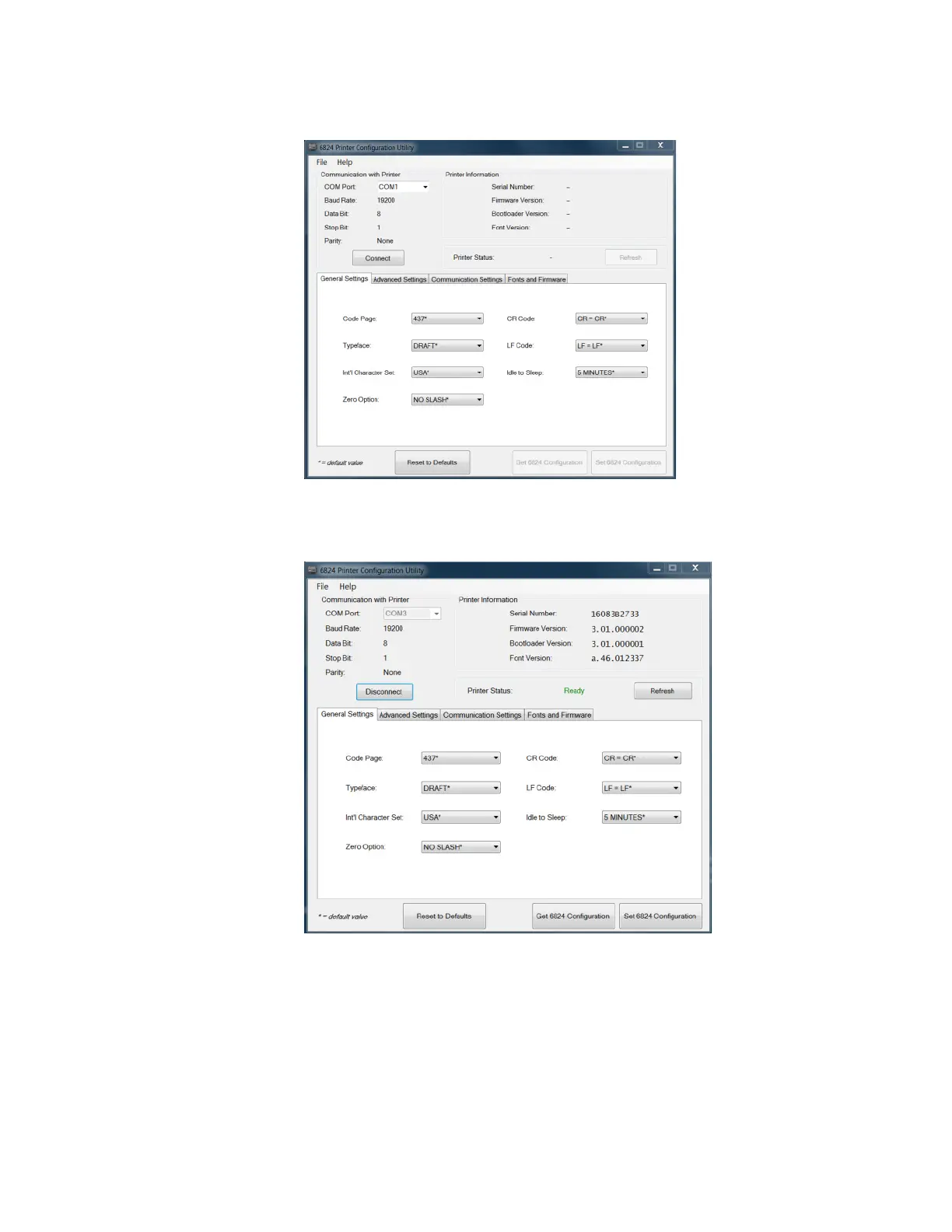 connects to the printer, the Printer Information section is updated.
