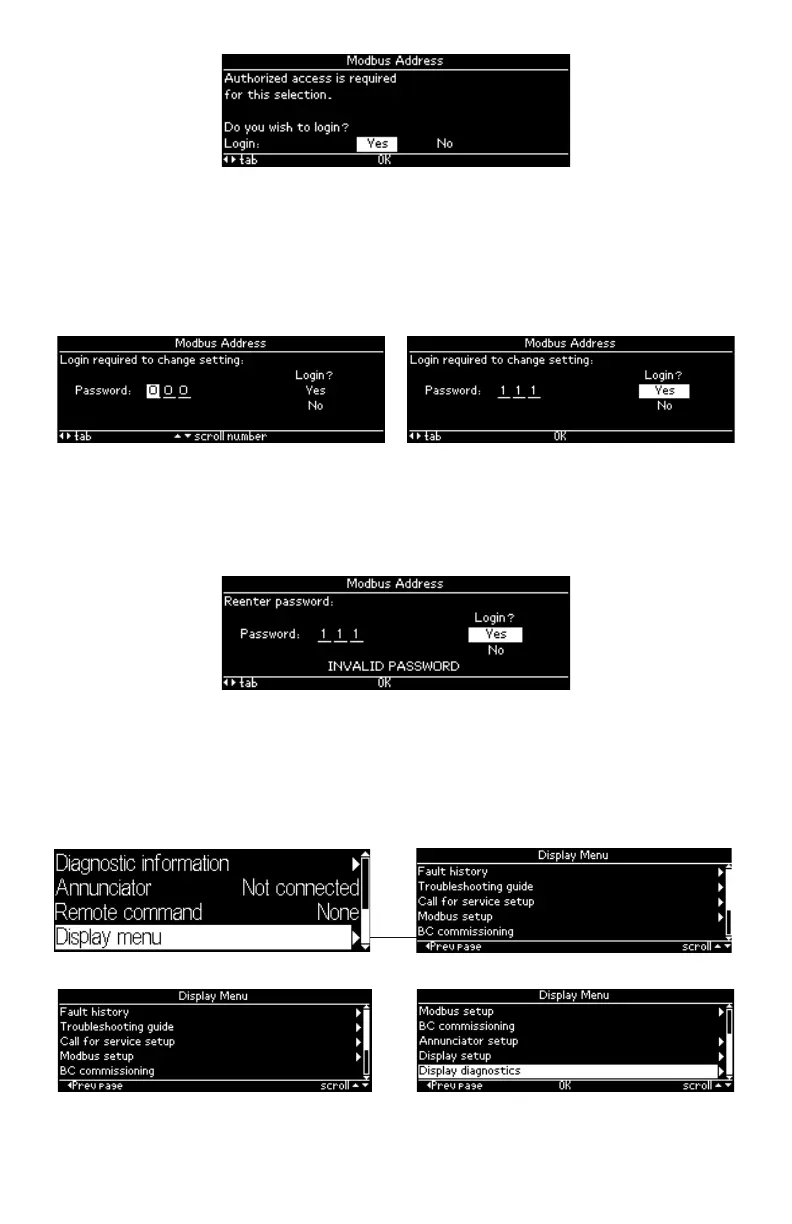 The 3-digit display password is entered by scrolling the digits and tabbing to the “Yes”