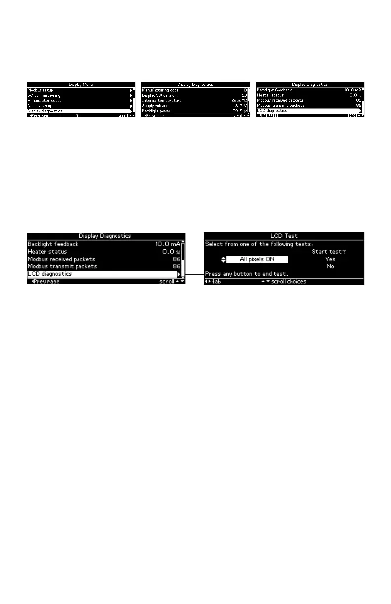 An additional selection line exists on the page to allow for LCD diagnostics to be initiated
