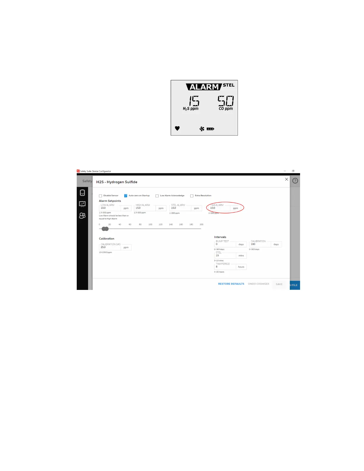 2. Enter the TWA alarm setpoint for the H