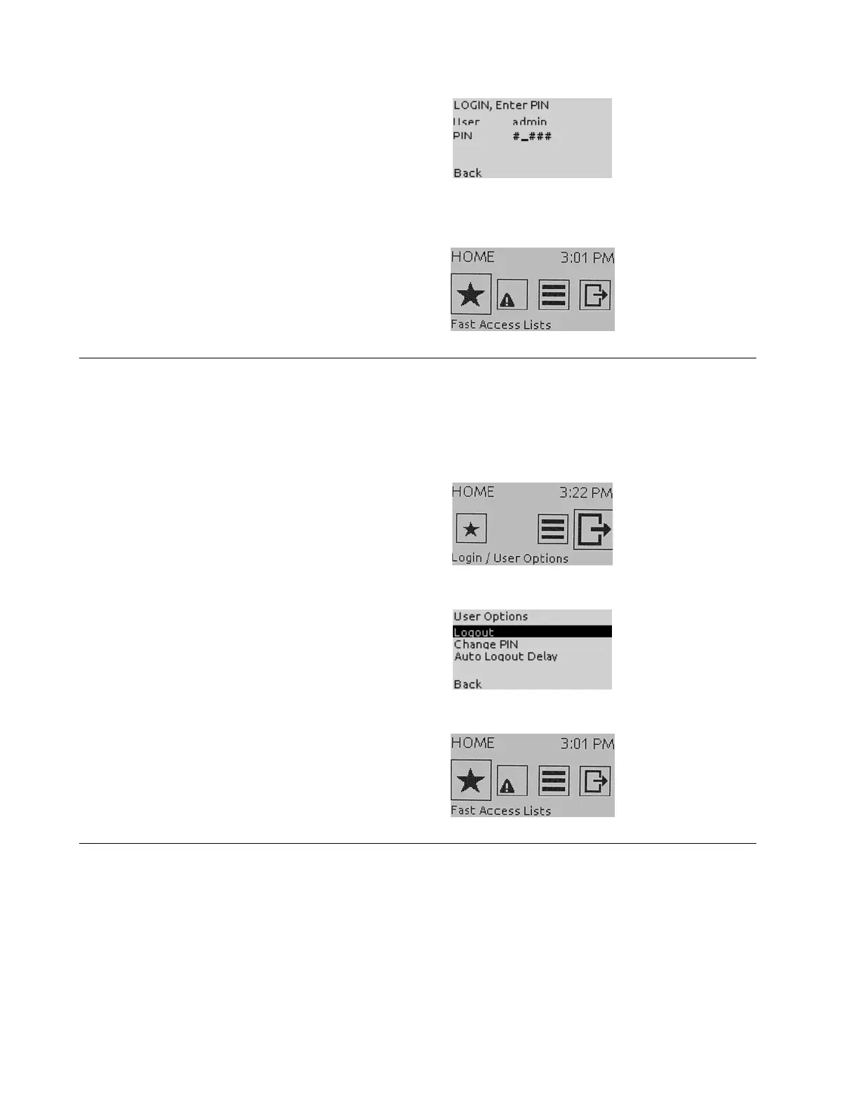 2. Push the rotate&push button. The User Options menu displays. Logout is