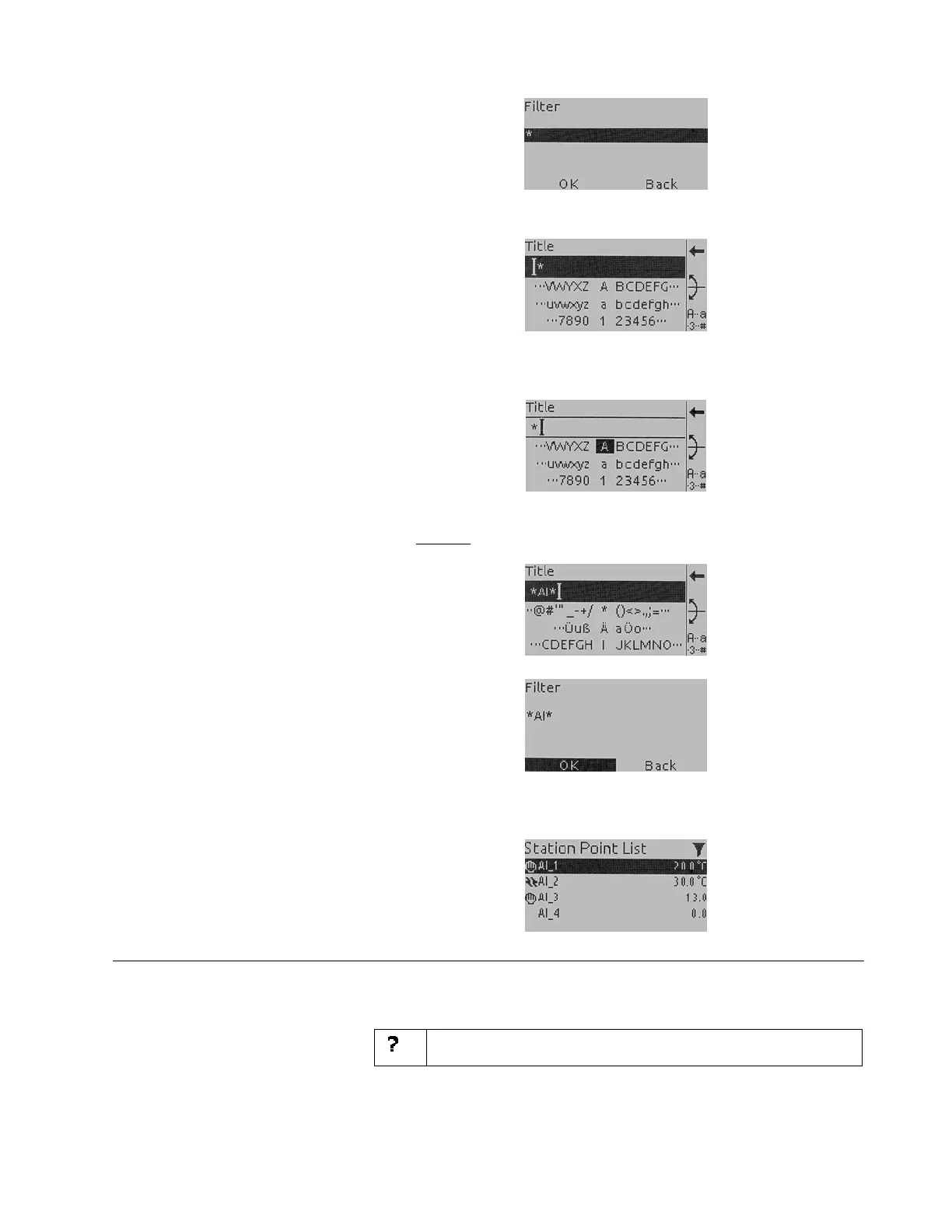5. Enter a filter string according to the procedure described in the “Editing Text