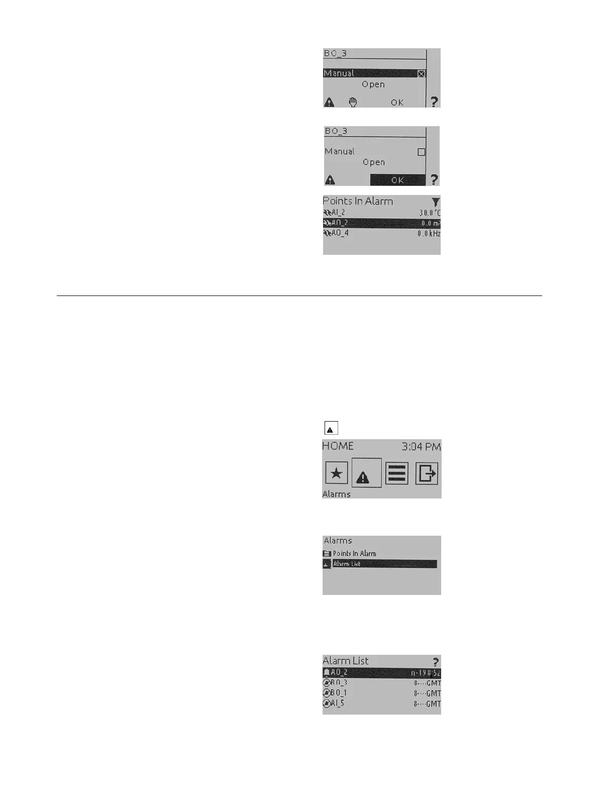 3.  Turn the rotate&push button to navigate to and highlight Alarm List.