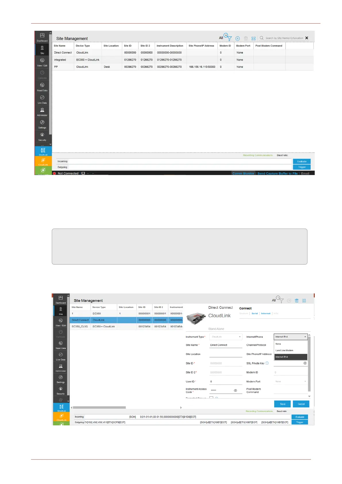 Note: To connect to a modem through serial interface, configure “CloudLink Serial port