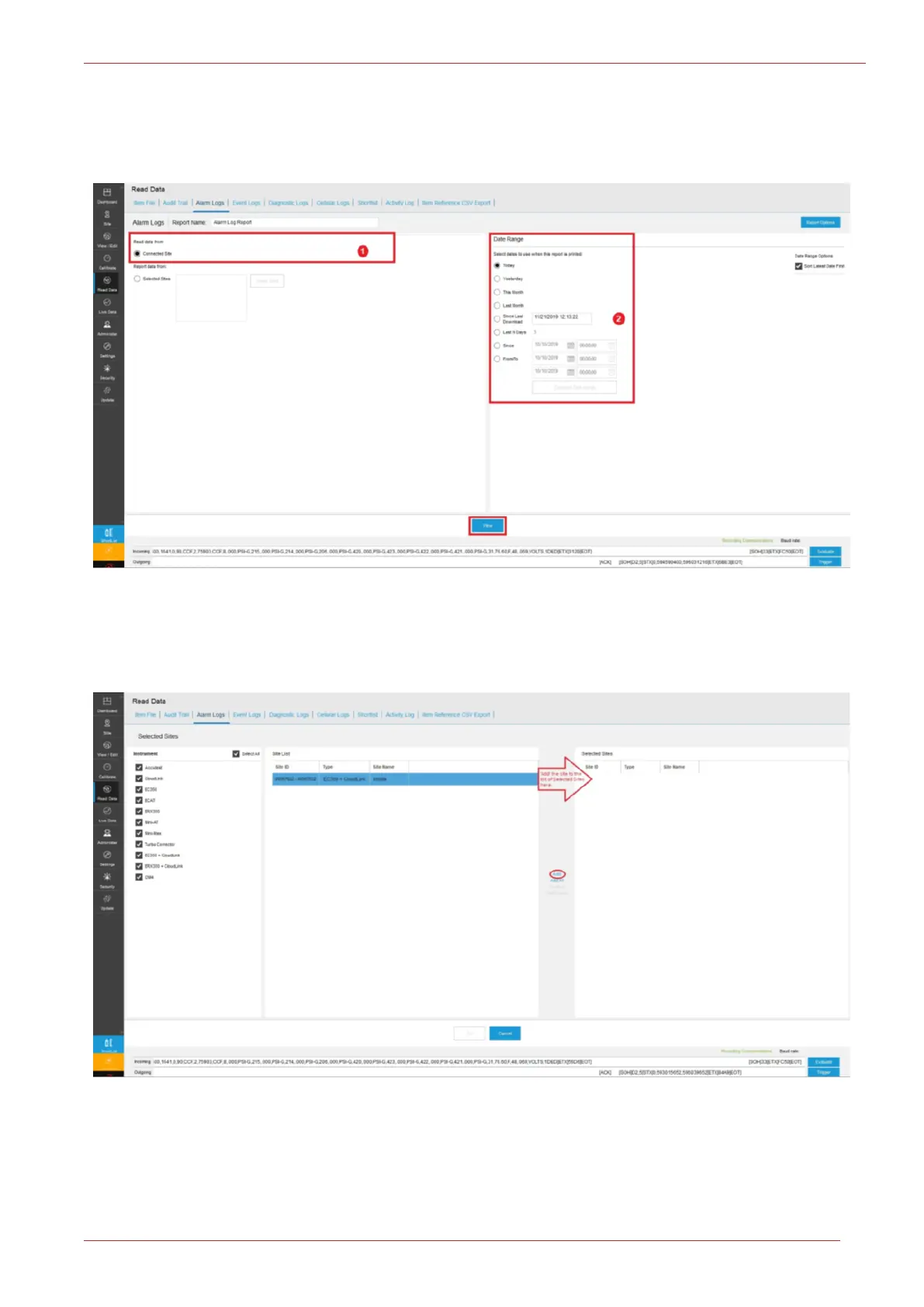 The Alarm report for the connected site is seen here.