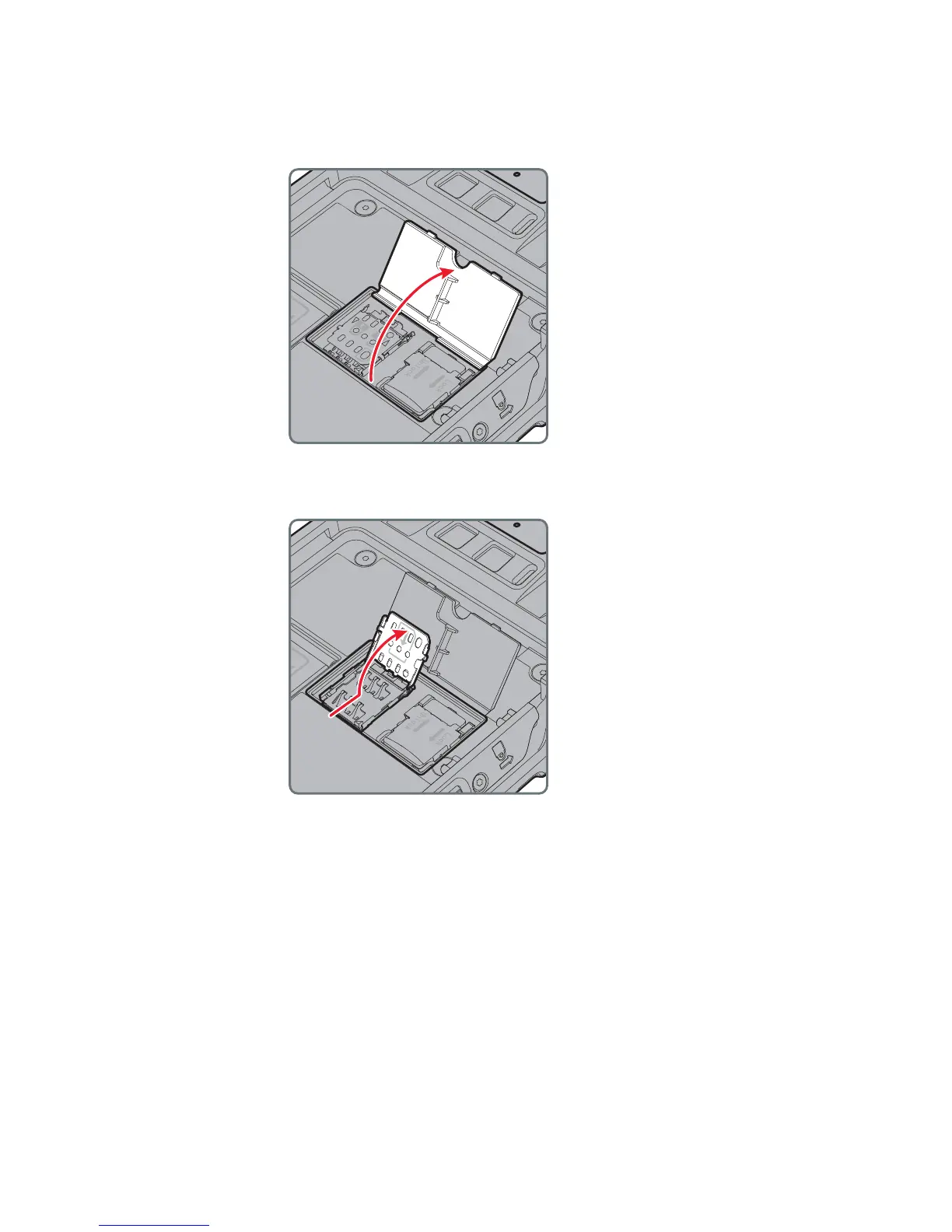 6 Press down and slide the SIM door toward the top of the CT50 to