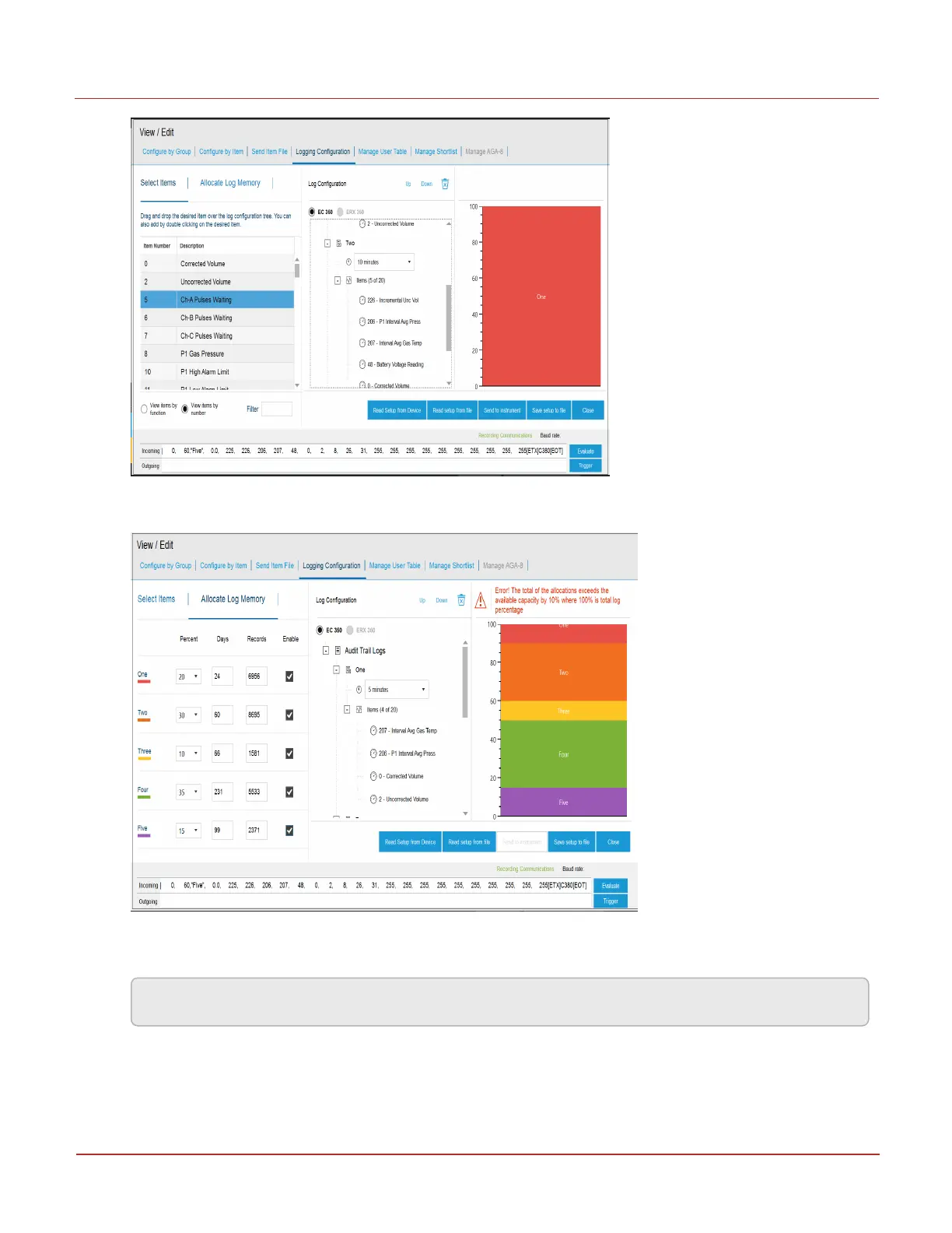 In the Allocate log memory tab, configure the percentage of available memory allocated to