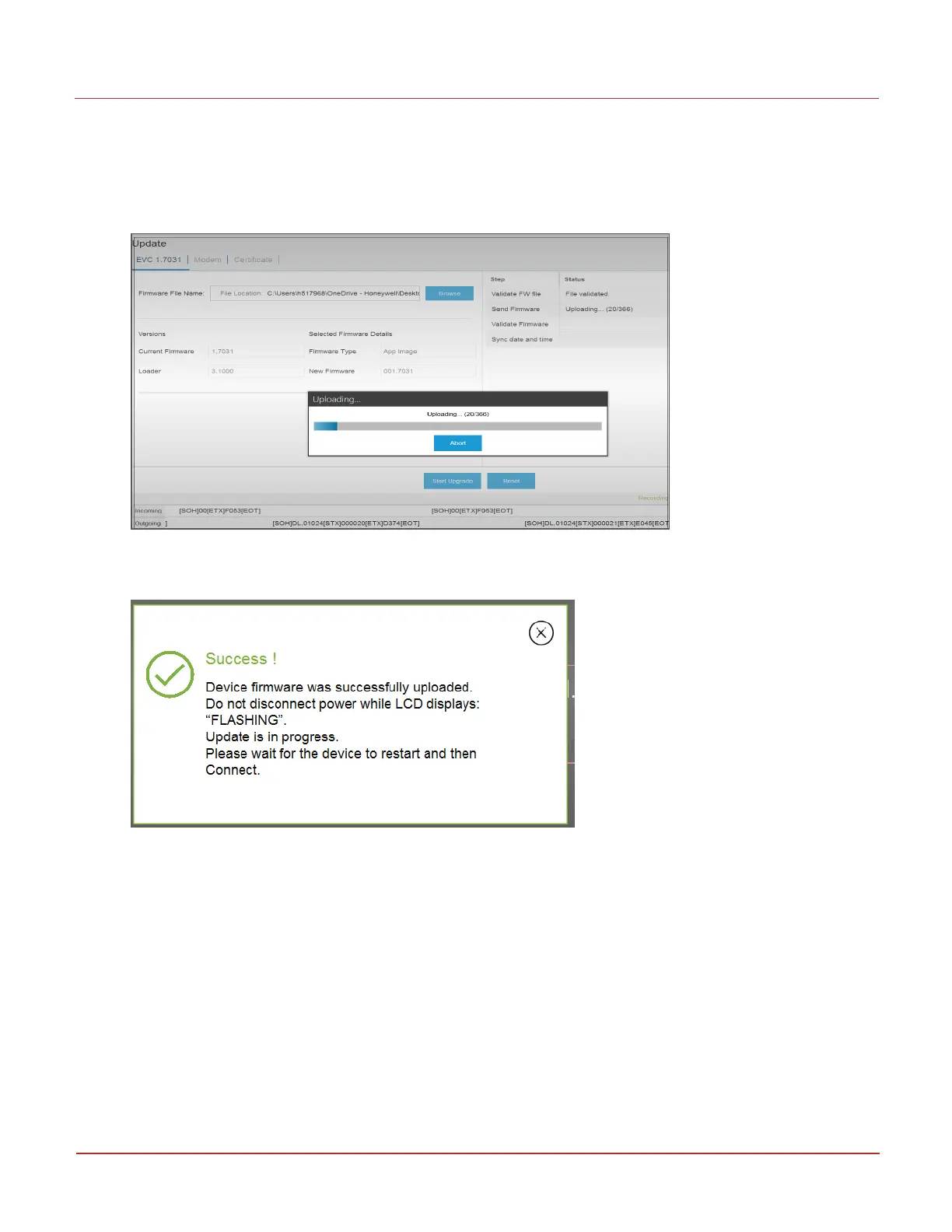 The program begins to load the new firmware and then validates its integrity. Once the firmware is