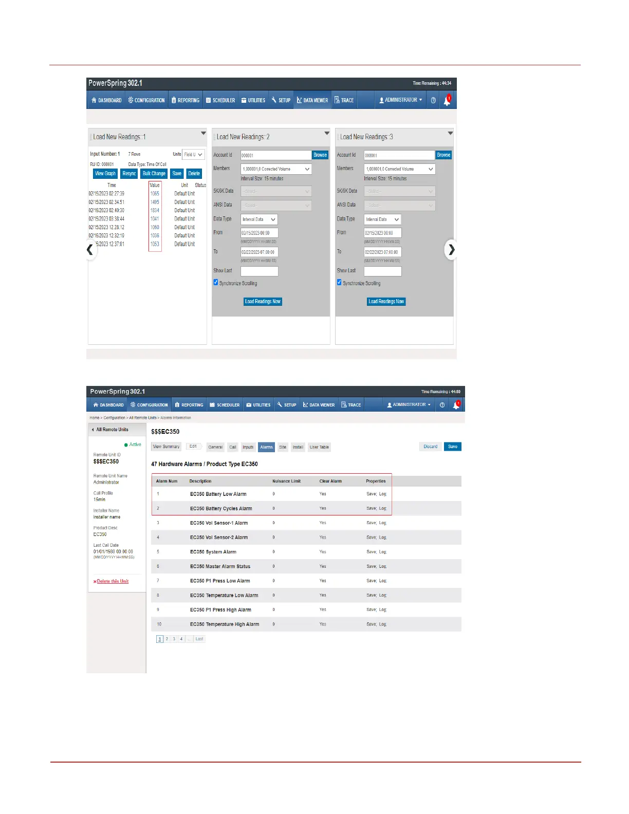 Navigate to ALARMS tab as and configure the ALARMS for EC350 device, user can configure the