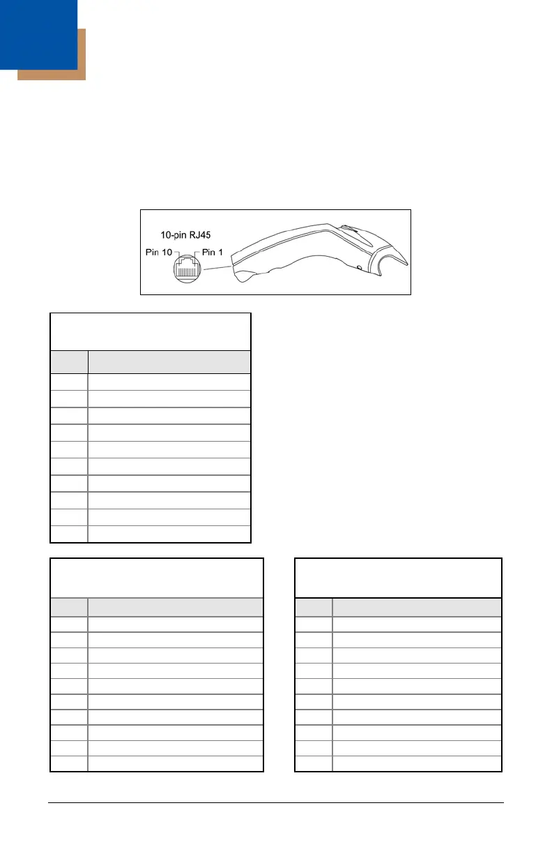 The MS5145 scanner interfaces terminate to a 10-pin modular jack. The serial