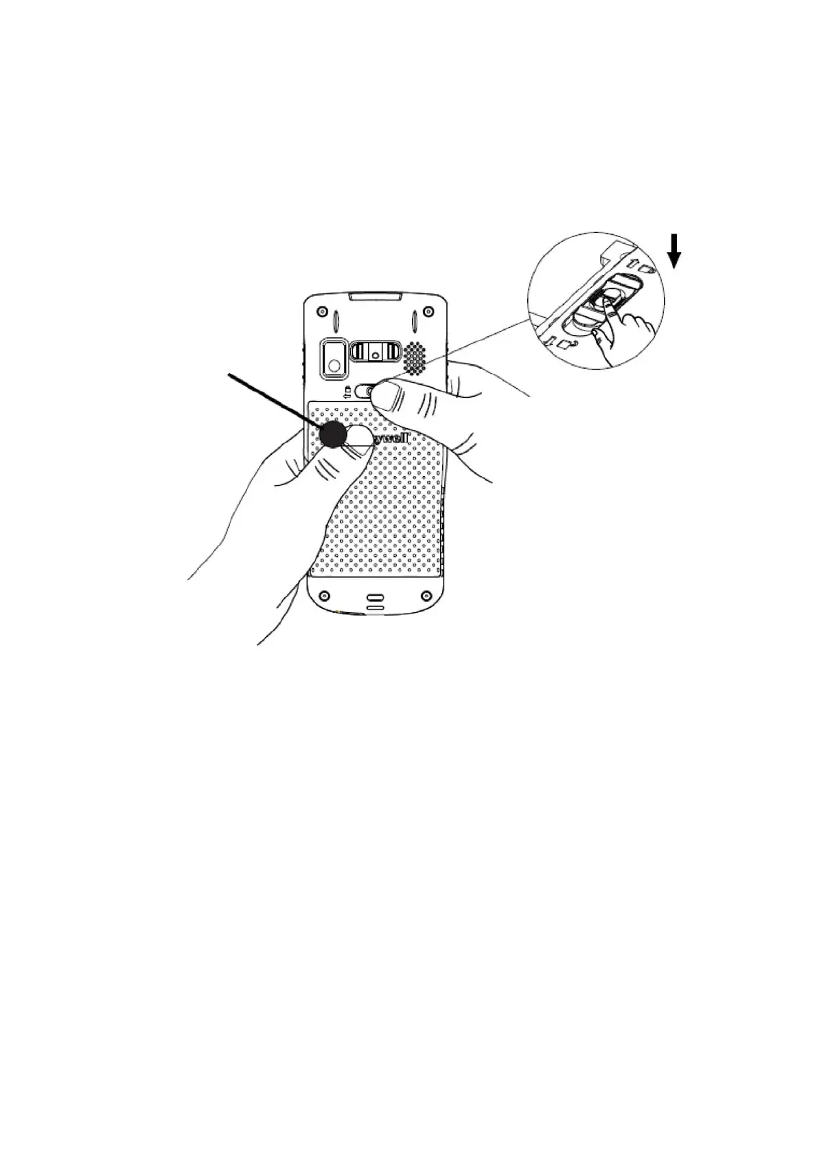 1. Press the battery cover with one hand, and press the battery-cover safety button with
