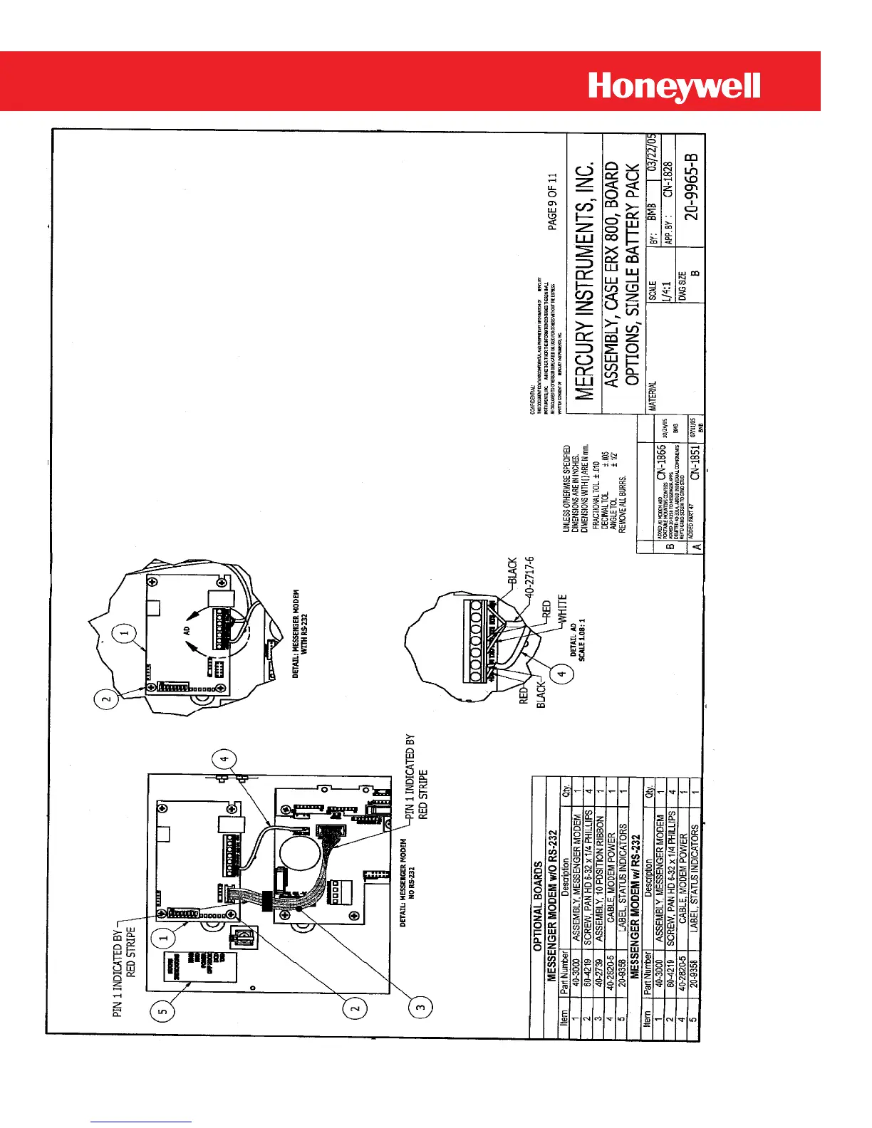 Honeywell ERX - Messenger Modem Parts List; Modem without RS-232 Components; Modem with RS-232 Components