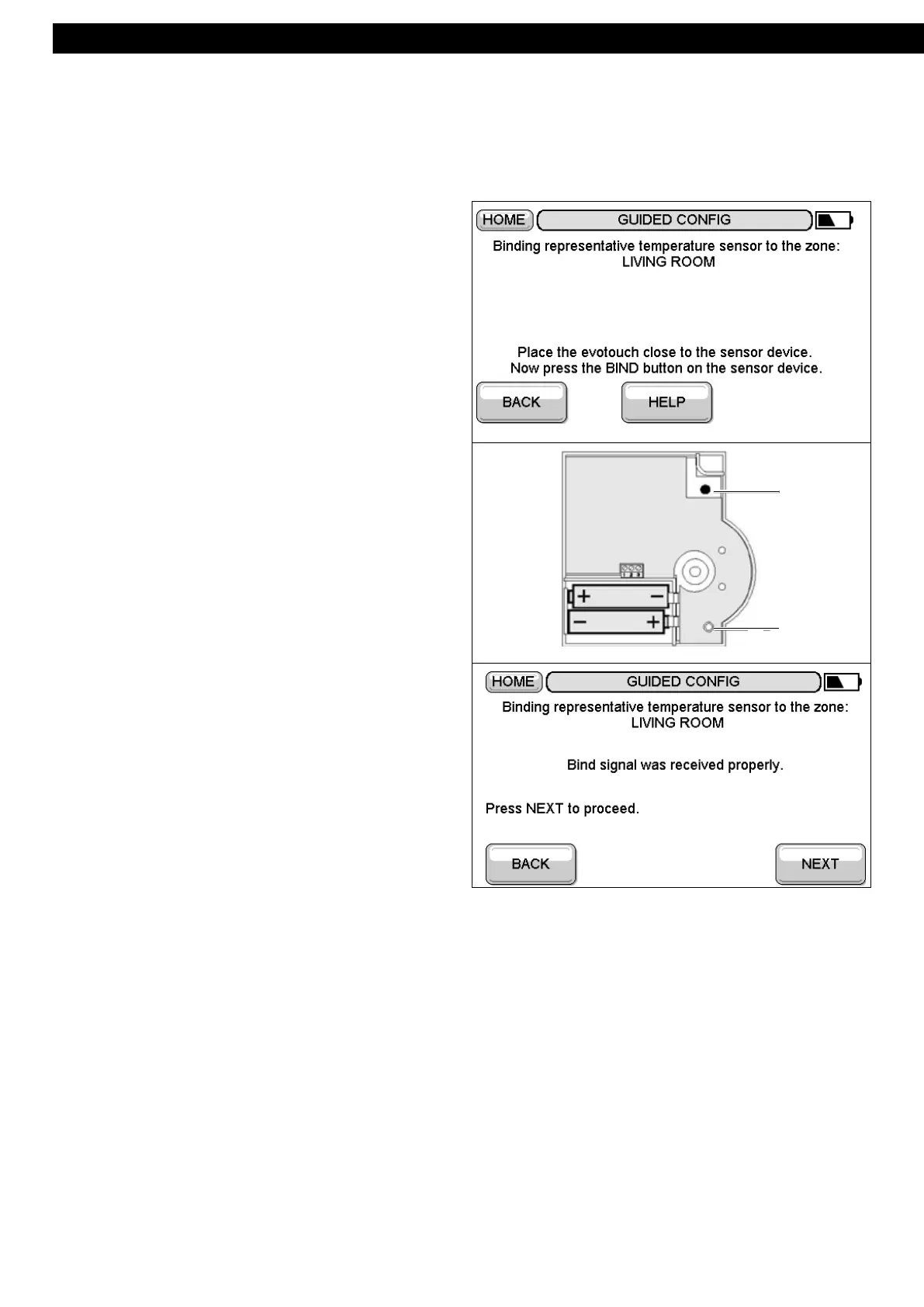 Binding the evotouch controller to the HCW82 room adjuster/sensor or to 4.9