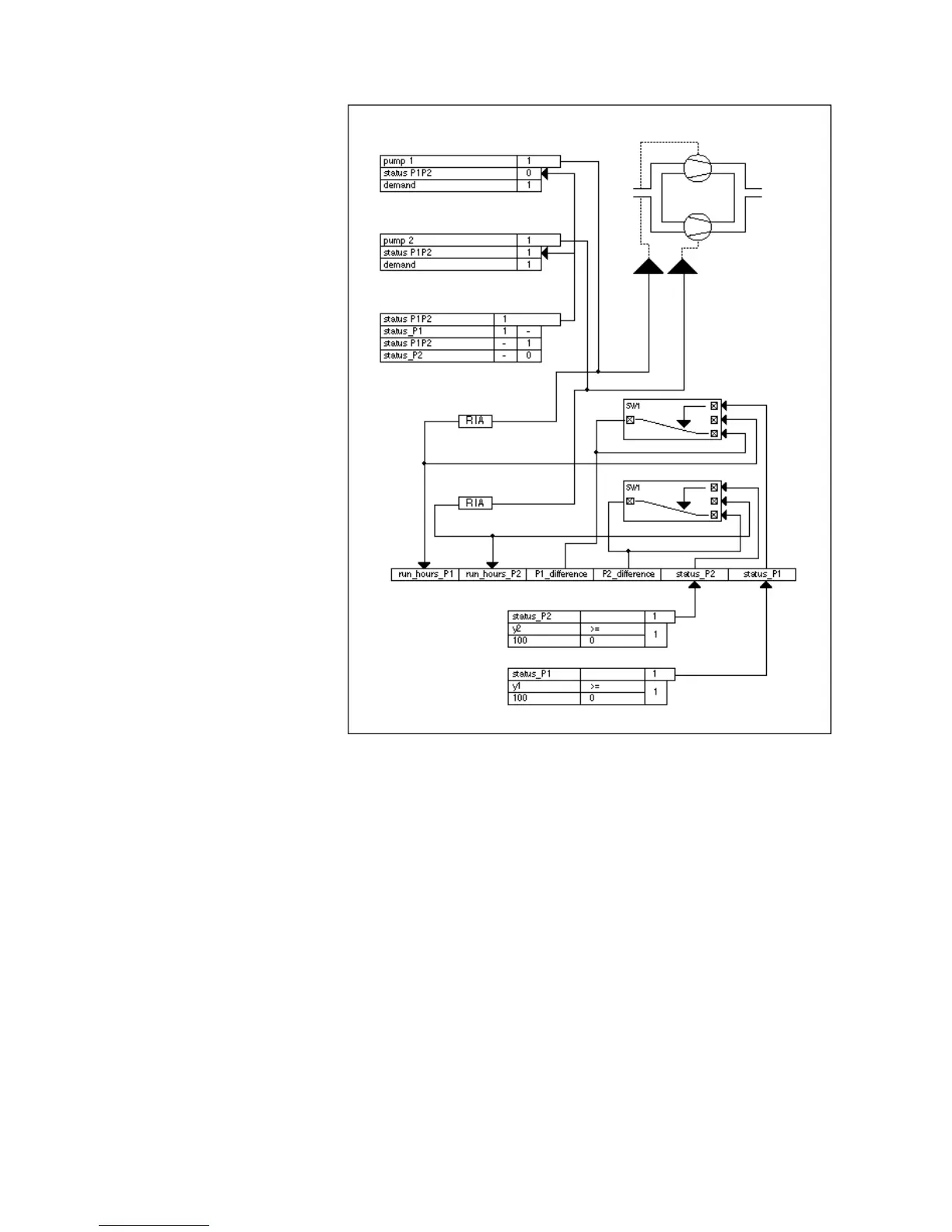 status P1 and status P2. Y1 and Y2 are MAT formulas that work together to operate