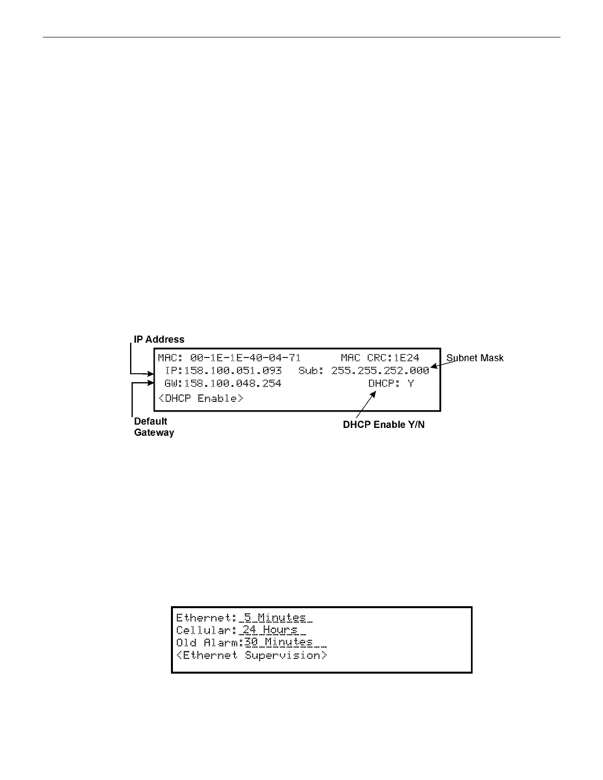 • Ethernet: None, 75 seconds, 90 seconds, 3 minutes, *5 minutes, 1 hour, 24 hours,30 days.