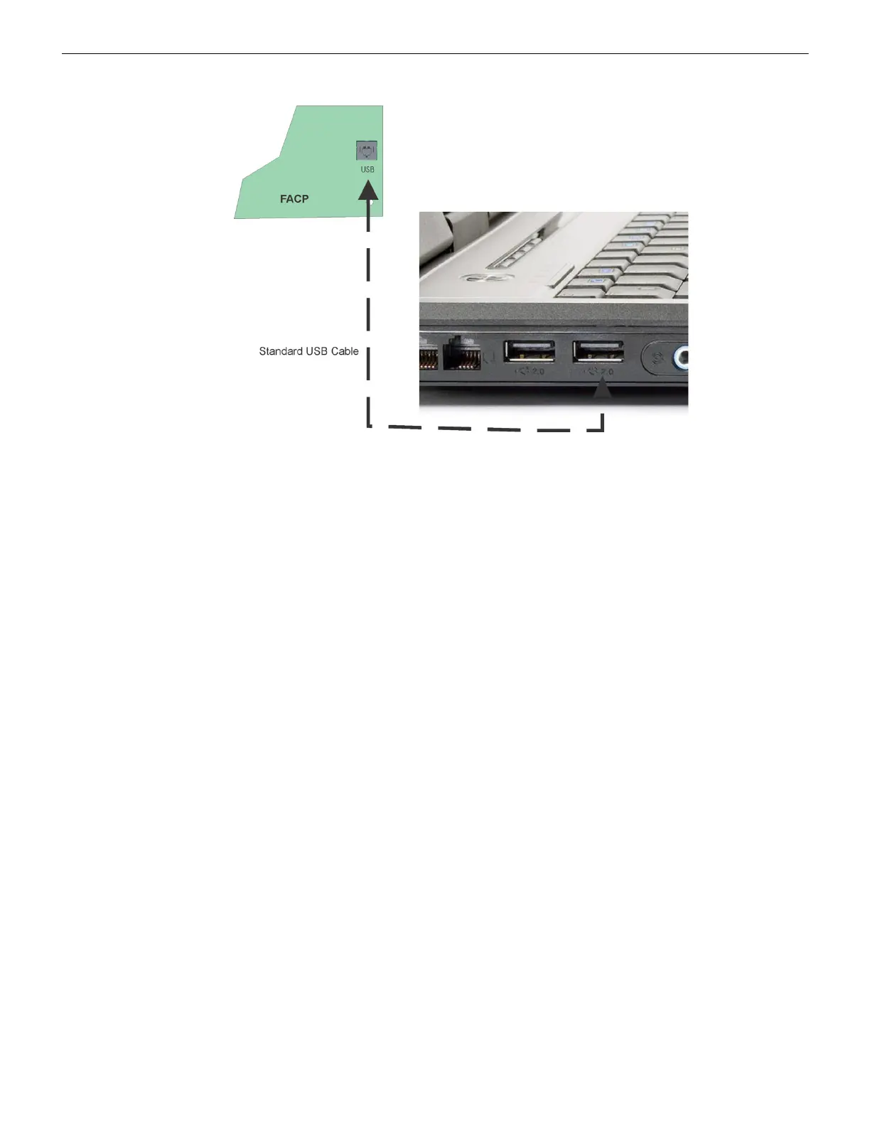 2. Connect the PC to the FACP USB port using a standard USB cable. ECS-NVCM will use the USB on the FACP (See Figure 11.8 on