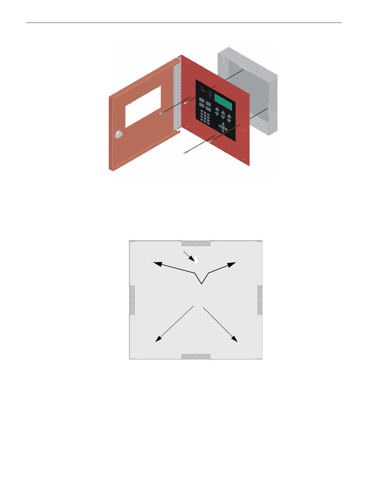 4. Attach the annunciator and door assembly to back box as shown in Figure 4.12 using the supplied screws.